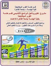 يمثل هذا الكتيب مجهودا متواضعا من إدارة مشروع تطوير وتأهيل برنامج هندسة القوى الميكانيكية بكلية الهندسة – جامعة القاهرة للإعتماد (مشروع – PP1- 007- CAI (DAPAP للتعريف بأهم الأهداف والمخرجات الرئيسية للمشروع ولتوضيح كيف ترتبط أنشطة المشروع وعملية تطوير وتحديث القسم بتحقيق وإستيفاء معايير إعتماد البرامج الأكاديمية للهيئة القومية لضمان الجودة والإعتماد فى التعليم NAQAAE.